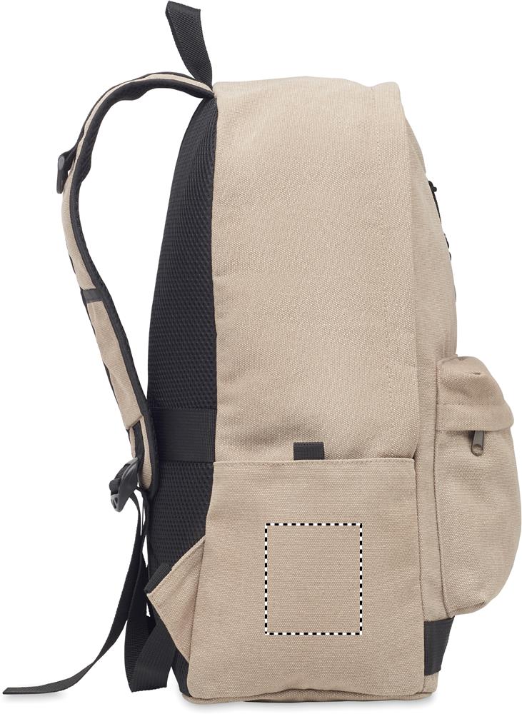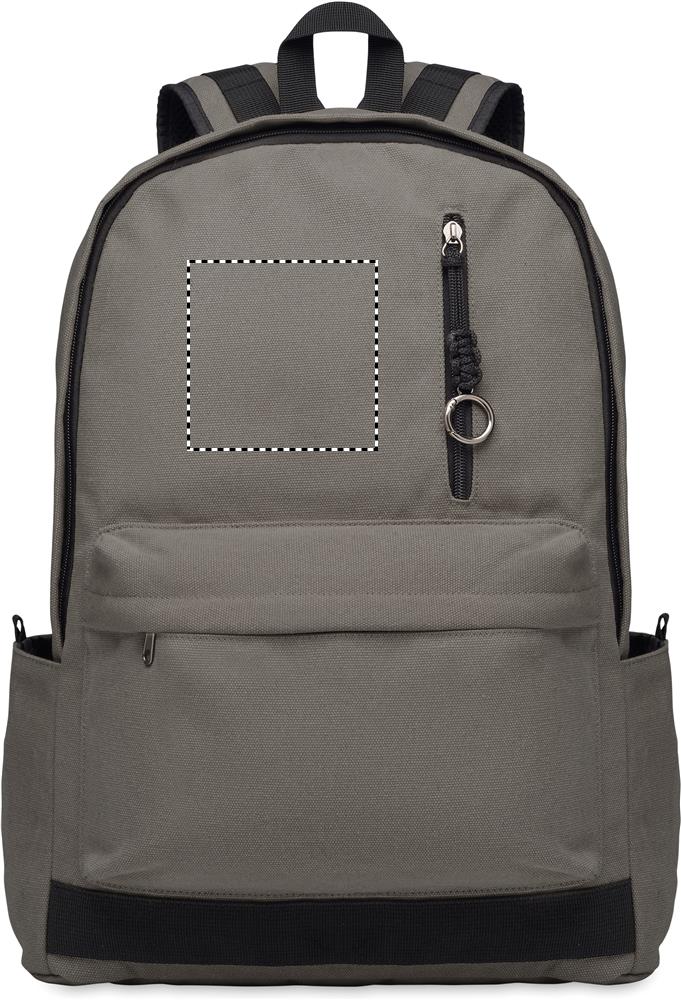 En 15-tums laptopryggsäck tillverkad av återvunnen förkonsumentbomull med anpassningsbar tryckning