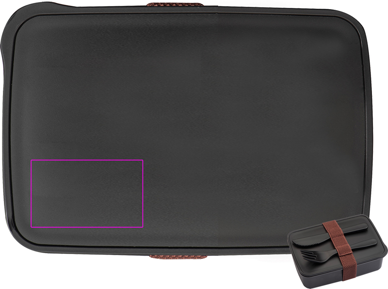 Matlåda av polypropen (BPA-fri). Tack vare de integrerade besticken är lådan den perfekta följeslagaren. Lådan tål diskmaskin och mikrovågsugn. Observera: logotypen tål inte diskmaskin. Din logotyp kommer att tryckas på locket.