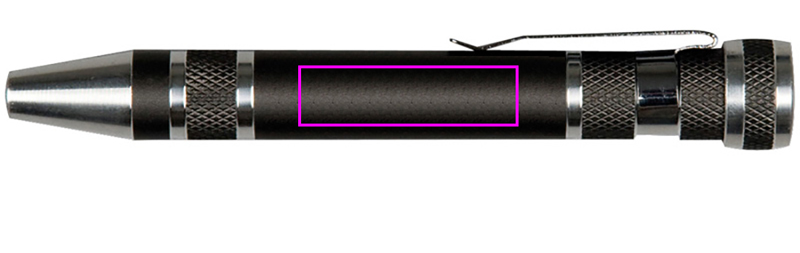 Skruvmejselsats i metall med åtta olika bits. Vi applicerar ditt reklambudskap på skaftet med hjälp av lasergravering.