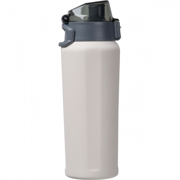 Snygg flaska tillverkad av återvunnet rostfritt stål, dubbelväggig med vakuumisolering för att hålla drycker varma eller kalla under längre perioder. Den har en kapacitet på 600 ml och har ett praktiskt klicklock för enkel hantering. Din logotyp kommer att graveras centralt med laseretsning – perfekt för branding. Funktionell, hög kvalitet och idealisk för användning på språng.