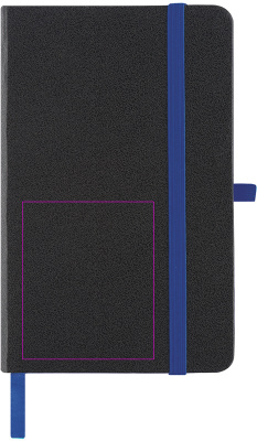 Anteckningsbok med svart PU-omslag och 160 raderade sidor. Elegant look genom färgglada accenter. Vi trycker din logotyp på omslaget.