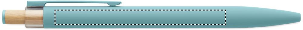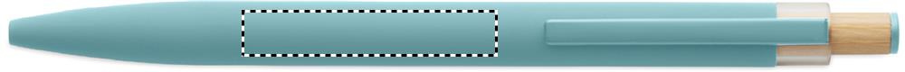Penna i återvunnen aluminium med bambuknapp med matchande färgdetaljer och matchande metallklämma. Blått bläck.