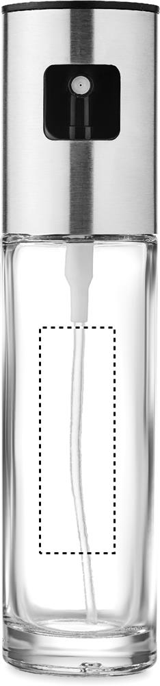 Sprayflaska i glas med och lock i rostfritt stål för matolja. Ger jämn sprayfilm på sallad eller stekpanna . Kapacitet: 100 ml.