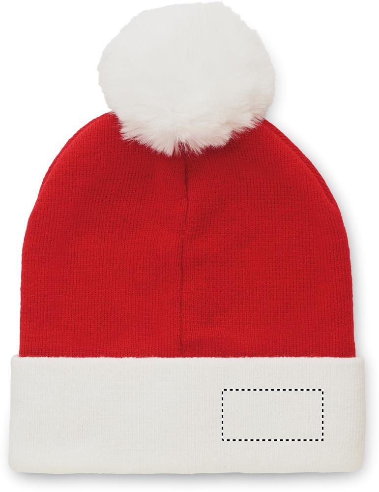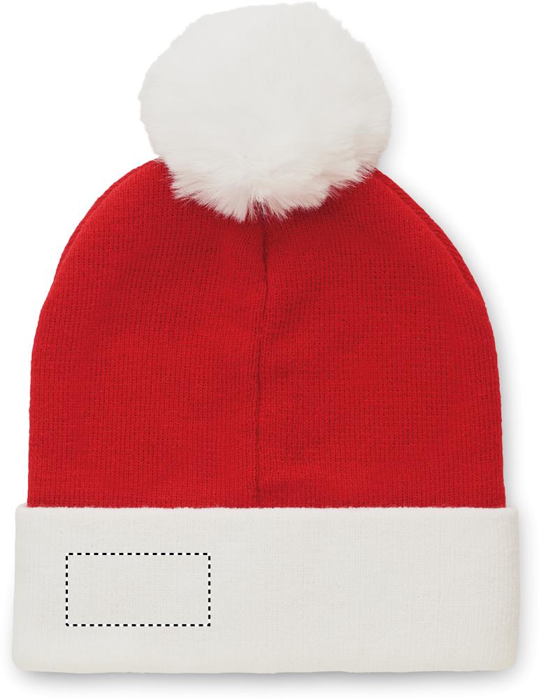 Stickad julmössa med uppvik/bord och tofs i PET-polyester.