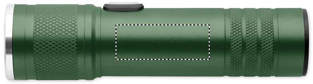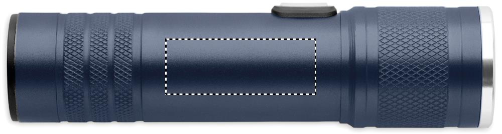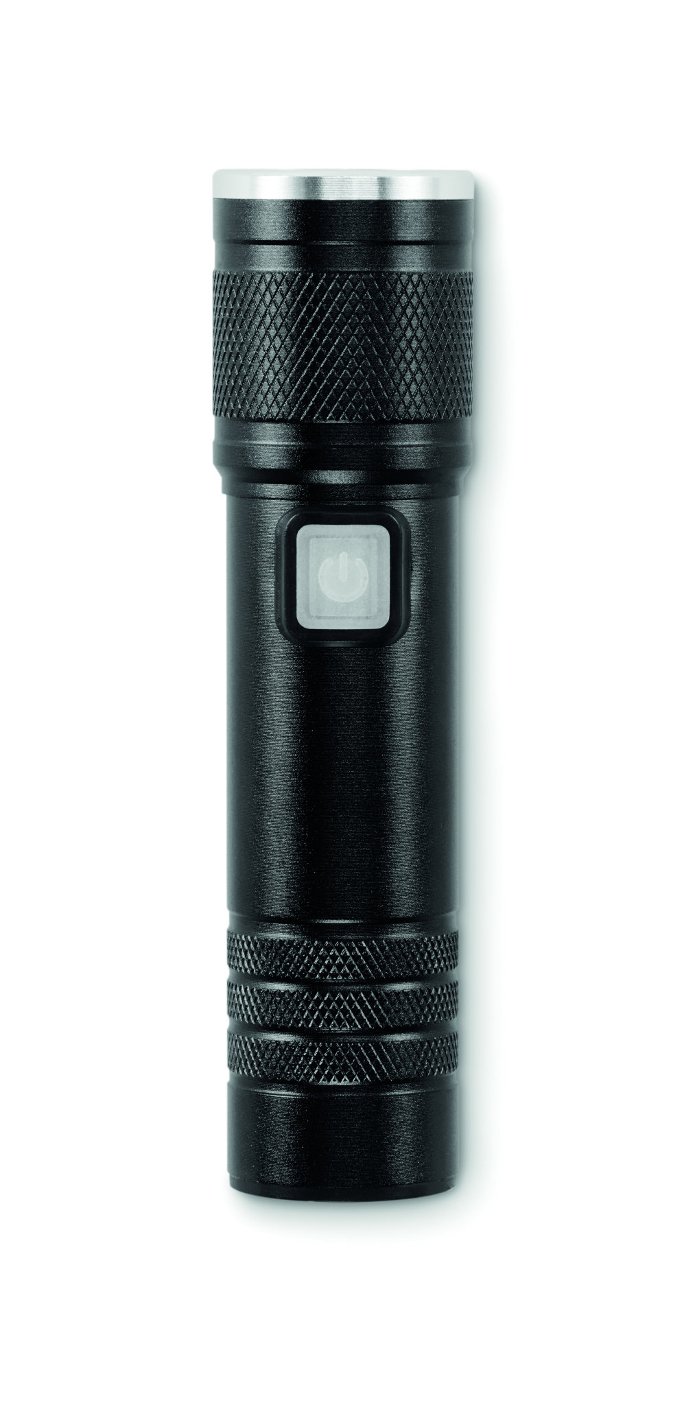Uppladdningsbar och expanderbar COB-ficklampa i återvunnen aluminium. 100 lumen med 3 ljusinställningar och zoomfunktion. Inbyggt uppladdningsbart batteri på 800 mAh. Laddningskabel ingår.